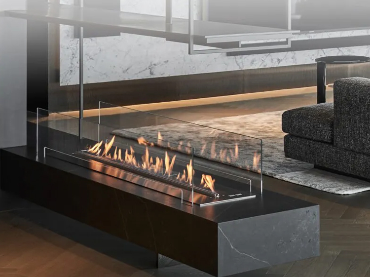 Fireplaces with BEV technology are a perfect solution for projects with real fire, without the need for chimney installation or air supply. They do not require the venting of exhaust gases, which allows for arrangement freedom. They do not generate smoke, soot, or ash, and can be placed almost anywhere, including media walls under the TV, room divider in glazed or unglazed option. We recently created the world’s first outdoor models with BEV technology. Planika has been taking projects with fire to the next level for years.