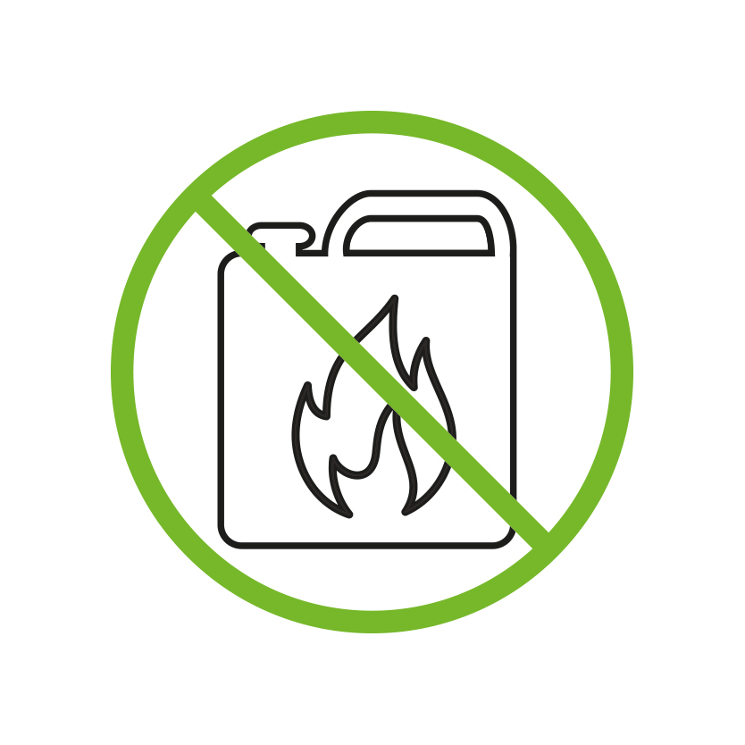 The fire has no direct contact with the liquid fuel. Thanks to the insulated fuel tank, cooling fans and combustion chamber, the ethanol fuel temperature is always low and safe.